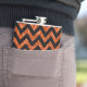 Hip and trendy Chevron Glitter Look Flask. This cool flask features a chevron zig zag pattern on top of a digital art orange glitter background.