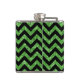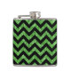 Hip and trendy Chevron Glitter Look Flask. This cool flask features a chevron zig zag pattern on top of a digital art green glitter background.