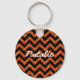 Hip and trendy Chevron Glitter Look Keychain. This cool keychain features a chevron zig zag pattern on top of a digital art orange glitter background. Add text to this design to give it a personal touch.