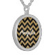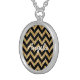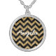 Hip and trendy Chevron Glitter Look Necklace. This cool necklace features a chevron zig zag pattern on top of a digital art gold glitter background. Add text to this design to give it a personal touch.