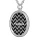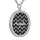 Hip and trendy Chevron Glitter Look Necklace. This cool necklace features a chevron zig zag pattern on top of a digital art silver glitter background. Add text to this design to give it a personal touch.