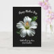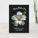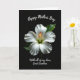 Designed with a tall, centered layout, this card features a large white tropical flower glowing against a deep black background, like a quiet spotlight on something cherished. The wide petals open gently with soft ripples and fine vein lines, giving the bloom a tender, almost embracing look ❤️. In the middle, warm orange and yellow stamens add a cozy spark, like a small burst of affection nestled at the flower’s heart. Dark green leaves peek from behind the petals, adding depth and a calm, natural frame around the bloom. The greeting “Happy Mother’s Day” appears in white lettering arched along the top edge, standing out clearly against the dark space. Near the bottom, a second line in smaller white lettering reads “With all of my Love, Great Grandma,” placed low and centered beneath the flower. The lighting stays soft and focused, making the petals look luminous while the background remains velvety and shadowy 🌼. Tiny pollen-tipped points sit at the ends of the central stamens, highlighted in bright yellow and orange.