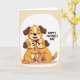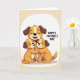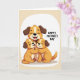 This greeting card features three cartoon-style dogs cuddled close in a gentle family hug, with a larger orange-and-cream dog in the middle smiling with eyes softly closed. Two smaller puppy-like companions lean into its sides, their cheeks near its chest as if soaking up comfort, and their little paws overlap in a protective clasp that feels tender and affectionate ❤️. The scene sits inside a soft white-edged vignette that floats on a warm beige background, keeping the focus on their closeness. Rich brown ears and subtle shading add depth while the smooth linework keeps everything friendly and easy to read. To the right of the illustration, the text “HAPPY MOTHER’S DAY” appears in uppercase lettering, set in a medium brown tone that matches the warm palette 🌼. The letters are spaced with breathing room, balancing the image without crowding it, and the overall layout feels calm and caring. The final detail is the soft beige backdrop surrounding the white vignette, with the brown message placed neatly on the right side.