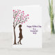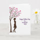 This greeting card features a white background with a stylized tree on the left, its warm brown branches reaching upward and outward. The tree’s canopy is filled with fuchsia heart-shaped leaves, like little love notes clustered together ❤️. Beneath the branches stands a deep-brown feminine silhouette in side profile, with a neat, swept hairstyle and a simple dress shape, her relaxed posture suggesting a gentle bond and steady support. To the right of the illustration, the message reads “Happy Mother’s Day To a Wonderful Wife,” set in flowing dark purple lettering that feels soft and affectionate. The text sits in the open space beside the tree, giving the artwork room to breathe while drawing your eye across the card. The limited colors—white, brown, pink, and purple—keep the scene calm and romantic, with the hearts adding a sweet, celebratory touch 🌼. The fuchsia hearts cluster thickest near the top of the tree, while the purple message is centered on the right side against the white space.