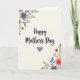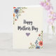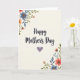 Designed with a gentle Mother’s Day message, the words “Happy Mother’s Day” run down the center in flowing lettering that feels like a soft embrace ❤️. A muted lavender heart sits close to the message, adding a quiet touch of affection without stealing attention. Watercolor-style flowers frame the scene from the top-left and bottom-right corners, like two bouquets leaning toward each other in a friendly, caring gesture 🌼. The blossoms mix soft coral, dusty blue, and tender peach, with leafy greens that curl around the petals in a calm, springlike way. The off-white background stays creamy and bright, giving the artwork plenty of breathing room and keeping the mood light. The text is centered vertically, with the greeting in a darker ink tone that stands out clearly against the pale backdrop. Each petal and leaf shows subtle texture, as if brushed on with a light wash and left to dry naturally. In the top-left corner, small blooms and green sprigs cluster inward, while the bottom-right arrangement mirrors them with layered petals and tapered leaves.