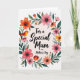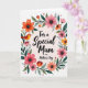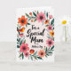 This greeting card features a white background with a lush floral wreath forming an embracing circle around a short message. The lettering sits centered inside the wreath in flowing black text, giving the words a gentle, romantic tone without overpowering the art. Around it, layered blossoms in coral, fuchsia, and soft orange nestle closely together, as if leaning in like friends sharing a quiet moment ❤️. Deep green leaves weave between the flowers, with thin curling tendrils that add a light, airy sense of movement. On the left side, a small golden-orange bird perches on a branch, and a tiny red heart detail near it adds a sweet, affectionate touch 🌼. Tiny pink and green dots are sprinkled around the wreath like confetti, adding texture and a celebratory sparkle. The wreath is made up of coral and fuchsia flowers with dark green leaves, and the small bird sits on the left branch beside a tiny red heart.