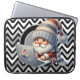 A Chevron Gray, White And Black Pattern Neoprene Laptop Sleeve With A Laptop Gnome