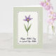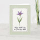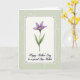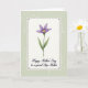 The front design shows a single watercolor-style flower with pointed lavender petals that deepen toward the center, leaning gently as if offering a quiet, affectionate hello ❤️. A sunny yellow cluster sits at the heart of the bloom, drawing your eye inward like a warm glance shared between close friends. The flower stands on a slim green stem with two long, lightly veined leaves that angle outward in a relaxed, caring pose. All of this sits inside an off-white rectangular panel with a faint paper-like texture, giving it a soft, calm look. A thin charcoal border frames the panel, with small decorative marks in the corners that add a touch of detail without feeling busy. Below the flower, a short message is placed in flowing dark gray lettering, centered and spaced to feel airy. Behind the framed panel, the background is muted sage green with gentle vertical streaks, like lightly worn fabric or aged paper 🌼. The corners show tiny charcoal accents that echo the border lines.