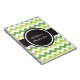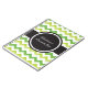Gradient lime green chevron pattern with center black circle for personalization text.