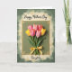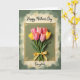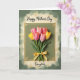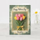 This card shows a serene Mother’s Day scene centered on a full bouquet of spring tulips in pink and sunny yellow, their smooth petals leaning close together like a gentle hug ❤️. Rich green stems are gathered neatly and tied with a golden ribbon that adds a soft glow. The bouquet sits on a muted olive-green panel, framed by a lightly weathered border with a gold-like shimmer and small corner flourishes. Behind it, the background blends sage green and creamy beige washes, giving the whole layout a calm, airy look 🌼. Near the top, the text “Happy Mother’s Day” appears in flowing cursive lettering in a dark tone that stands out against the pale backdrop. Near the bottom, the word “Daughter” is placed beneath the panel in a smaller matching color, like a quiet signature. The border’s gold effect catches the eye along the edges, while the tulips remain the bright focal point against the soft greens and creams. Tiny decorative swirls sit at the frame’s corners, and the ribbon’s bow falls slightly to one side beneath the stems.