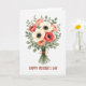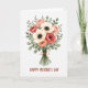 This greeting card features a centered bouquet of mixed flowers on a plain white background, arranged like a friendly gift offered with a gentle, affectionate touch ❤️. Creamy white blooms with dark, detailed centers sit beside coral, peach, and deep red flowers, their softly painted edges giving them a tender, romantic softness. Layers of leafy greens in several shades cradle the blossoms, adding depth and a cozy, close-together feeling, like a tight hug in floral form 🌼. The stems are gathered neatly with a rustic burnt-orange ribbon tied into a simple bow, suggesting care and closeness without needing any extra fuss. Below the bouquet, a small hand-lettered message sits near the bottom center, written in warm earthy brown that echoes the ribbon’s tone. The text stays secondary to the artwork, leaving the flowers to do most of the talking while the placement keeps the page feeling balanced. Soft, diffused lighting makes the petals look lightly translucent, as if they’re glowing from within. The bouquet sits squarely in the middle, with generous white space around it and the warm-toned message tucked just beneath.