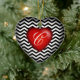 Chevron Monogram Heart | black white red Ceramic Ornament