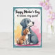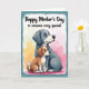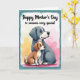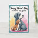 Designed with two stylized dogs in a close, affectionate pose, the artwork centers on a larger gray dog shown in side view, looking up and to the right as if keeping watch. Nestled in front is a smaller brown-and-white dog facing forward, its wide eyes and relaxed posture suggesting quiet trust and companionship ❤️. Behind them, a softly painted background shifts from warm golden yellow into a gentle rosy blush, like late-afternoon light. A deep teal, sketch-like border runs around the edge, giving the scene a cozy, framed look. Near the top, the message “Happy Mother’s Day to someone very special” sits above the dogs in flowing lettering, with a few letters touched by light pink accents 🌼. The lines stay simple and smooth while the eyes and slight tilt of the heads add a tender, protective feeling between the pair. The teal border has slightly uneven strokes, and the background shows faint brush textures blending the yellow into the blush.