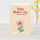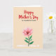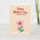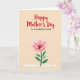 This card features a warm, creamy beige background with a large red message reading “Happy Mother’s Day” centered near the top, drawn with loose brush lettering that feels friendly and affectionate ❤️. Just below it, the smaller line “to a wonderful friend” sits in simple black lettering, neatly aligned under the main greeting. The layout leaves plenty of open space, giving the words room to breathe and letting the design feel calm and close. In the lower half, a single flower becomes the focus, its wide petals painted in soft blush pink tones that fade gently toward the edges like a tender blush. The darker center has fine stamen details, adding texture and a sense of care, as if the bloom is being offered to someone special 🌼. A deep green stem rises from the bottom with a few rounded leaves, balancing the soft petals with grounded color. Along the very bottom edge, a pale, washed brush mark stretches horizontally like a light band of paint beneath the stem.