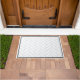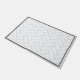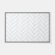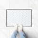 This simple chevron tile design is the perfect fit for those looking for something functional and stylish! This mat is primarily white with light gray grout lines and a dark gray border.