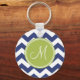 Chevron Pattern with Monogram - Navy Lime Keychain