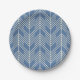 Chevron pattern with white zigzag lines on a blue paper plates