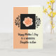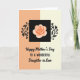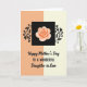 This greeting card features a softly split background, with peach-beige on the left blending into pale cream on the right, creating a gentle, welcoming scene ❤️. Near the top center sits a deep black square that feels like a little stage for the main flower, drawing the eye in with quiet drama. Inside it, a stylized bloom opens with layered petals in peach and warm orange, like a tender gesture shared in close company. On both sides of the square, dark vine-like silhouettes curl outward with leaves and tiny blossoms, as if they’re reaching toward each other in a calm, affectionate way 🌼. Below the artwork, the main greeting appears in flowing, decorative lettering, centered and easy to spot. Under that, a smaller line in a simple, neat font names the recipient, aligned beneath the greeting in a darker ink for contrast. The black square, the curling botanical details, and the warm-toned flower stand out crisply against the muted two-tone background.
