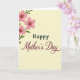 Designed with a soft creamy yellow background, the card feels sunny and gentle, like a quiet morning shared with someone you love ❤️. In the upper left area, three stylized flowers sit together, each with five pink petals and a warm golden-yellow center that hints at a tender, caring touch. Slim deep-green stems link the blooms, with a few simple leaf shapes that curve as if leaning in close like friends. Centered on the card, the word “Happy” appears first in deep forest green, set in a simple sans-serif style that keeps the look steady and calm. Just below it, “Mother’s Day” is written in rich burgundy with flowing, cursive-like lettering and soft flourishes that feel affectionate without being overdone 🌼. The mix of pink petals, green stems, and the creamy background creates a soothing palette that keeps the message easy to notice. The layout stays uncluttered, letting the text lead while the flowers add a gentle frame. The burgundy “Mother’s Day” line is the largest text element, sitting directly under the smaller green “Happy,” with the floral cluster hovering above and to the left.