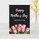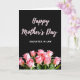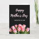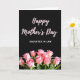On the front of the card a wide field of deep black fills the top area, giving the layout a quiet, intimate stage. Centered near the top, the words “Happy Mother’s Day” appear in soft pink, written in a flowing cursive style that feels gentle and affectionate ❤️. Just below, “DAUGHTER IN LAW” is set in simple white letters, aligned neatly under the main greeting for a clear, respectful address. A thin white horizontal line runs across the card to separate the text from the floral scene beneath. In the lower section, a lush cluster of blush-pink roses leans together, their layered petals suggesting closeness like a warm family embrace 🌼. Green leaves and stems weave between the blooms, adding fresh contrast against the dark background. The roses show delicate petal edges and subtle shifts from pale pink to deeper rosy tones near the centers.