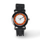 Red and orange chevron zigzag style Roman numeral watch. Customise with your name. This example reads Louise. Uniquely designed by Sarah Trett.