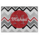 Chevron Red Grey Black Monogrammed Circle Stitches Cutting Board