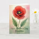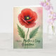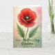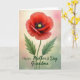 This design shows a single large red flower centered on the front, its wide petals opening like an affectionate embrace ❤️. The dark, near-black cluster at the center circles a bright yellow-green tip, drawing your eye in the way two close friends lean toward each other in a quiet moment. A slim green stem drops down from the bloom, with two jagged-edged green leaves spreading out to either side like gentle hands. The background fades from a soft apricot tint at the top into a light green haze near the bottom, giving the scene a calm, airy look 🌼. Just below the flower, a flowing line of text sits near the lower area in deep forest green, easy to notice without overpowering the artwork. The lighting stays soft and diffused, adding subtle depth to the petals and making the red tones look rich and layered. The flower’s center shows a ring of dark stamens around a glowing chartreuse pistil against the warm-to-cool gradient backdrop.