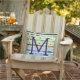 A seamless patio cushion with your own name initial letter monogrammed on a abstract background