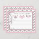 Grey and white chevron print with pink accents and tutu diapers on clothesline with giraffe tag advice card design for a girl baby shower.