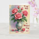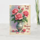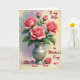 This card features a lush bouquet of pink blossoms, mixing fully opened flowers with small buds in shades from soft blush to deep fuchsia, arranged to feel like a gentle offering between close hearts ❤️. The petals look velvety and carefully layered, with soft light catching their edges as if someone just set them down with care. A smooth metallic vase in cool silver tones holds the stems, adding a quiet contrast to the warm, rosy flowers. Behind it, a watercolor-style wash blends lavender, calm blue, and a touch of warm yellow, like a peaceful room filled with afternoon light 🌼. Near the base of the vase, a single bloom rests beside a few scattered petals, suggesting a tender moment that lingered after the bouquet was placed. The message text sits neatly across the open background area in a dark gray, flowing letter style, standing out without overpowering the flowers. The composition keeps the bouquet centered while the softer colors fade outward, drawing your eye back to the pink cluster and the reflective vase. A few loose petals trail along the lower edge near the resting bloom, with the pale background shifting from lavender to blue behind them.