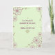 This card features a calm, muted sage-green background that sets a gentle, affectionate tone ❤️. Centered on the front is a main message in deep plum lettering reading “To A Wonderful DAUGHTER IN LAW,” with “Happy MOTHER’S DAY” placed just below in the same color. Around the edges, daisy-like flowers in soft lavender-mauve curl in from the corners, linked by thin winding vines and small olive-green leaves. Tiny star-shaped blossoms sit near parts of the wording, like little nods of closeness that draw your eye back to the message. Near the bottom, a larger, more abstract flower shape anchors the layout, giving the design a grounded, caring feel 🌼. The spacing keeps the text easy to read while letting the floral border feel like a gentle embrace around it. The blossoms have slightly darker centers, and the vines thread neatly between them along the outer frame.