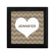 This stylish tile box makes a contemporary yet personal gift. Design features chic chevron pattern background with your name over a heart. Box is terrific for small jewelry, coins or personal mementos.