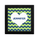 This stylish tile box makes a contemporary yet personal gift. Design features chic chevron pattern background with your name over a heart. Box is terrific for small jewelry, coins or personal mementos.