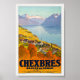 Vintage travel poster featuring a vibrant village alongside a serene lake, surrounded by lush vineyards and framed by majestic mountains. The quaint houses and a prominent church tower create a picturesque scene beneath a clear sky. Published in 1923 in Switzerland.