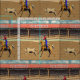 Cheyenne Rodeo Cowboy Calf Roping Fabric. Rodeo arena with Cheyenne text on the roof and a calf roper. Please note that this design has a textured look (see the close up) This is part of a collection with different rodeo events with this same rodeo arena background.