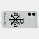 Chi-ro christogram icon with alpha and omega letters. Monogram forming abbreviation for the name of Jesus Christ. Vector monochrom icon with customizable color. Custom background color. Custom text.