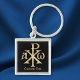 Chi-ro christogram icon with alpha and omega letters. Monogram forming abbreviation for the name of Jesus Christ. Custom background color. Custom text.