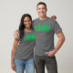 My 11 yo wore adult XL (5’7” 165#). The 8yo is small framed. She wore adult small and tied it in the back. Grandma wore adult large with long sleeve shirt underneath. Tall girl adult medium. Dark haired male adult large. Good quality dark Heather gray, Gildan brand shirt. -it was next up from basic choice and cost about $20 per shirt. Not too thick or thin. Washed and dried well, no major shrinkage. Not see-through. Can wear a bra under it fine. Screen print is just as shown and well done, front and back.