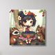 A sweet fairy tale wall art for a child's room. A cute little cartoon chibi fairy eating blackberries with her forest friends, a raccoon and squirrel.