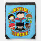 Check out Chibi Wonder Woman, Chibi Superman, Chibi Green Lantern, Chibi Flash, Chibi Batman, and Chibi Cyborg! These Chibi heroes are assembled together in this cute graphic with their super hero logos and "Justice League" in giant lettering.