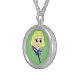 I chose gold plated so that the metal would not react with my skin oils and perspiration. But, I changed the necklace from the gold plated one to a sterling silver. My skin cells will tarnish the silver. But it will not look as bad if some portion of the gold plated necklace somehow became compromised. Zazzle did a find job turning the picture into a pendant for me. As you can see, the colors and the printing of the final product, match the preview. The picture I took is not very clear. But I am pleased with the product I received.