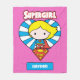 Check out Chibi Supergirl standing in front of a blue and white starburst heart, atop her S-Shield with name overhead.