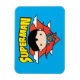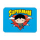 Check out Chibi Superman flying in the clouds with his super hero name overhead and red polka dot shield shape behind him.