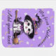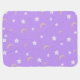 Snuggly baby blanket featuring an adorable kawaii kitten in a witch hat on a broomstick, in soft pastel purples and pinks.