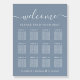 Chic dusty blue wedding seating chart foam board sign for up to 12 tables featuring "welcome" in a stylish white script with swashes, "Find Your Seat" in elegant white typography and your names and wedding date joined together by a heart.