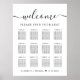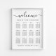 Chic downloadable wedding seating chart poster for up to 12 tables featuring "welcome" in a stylish script with swashes, "Find Your Seat" in elegant typography and your names and wedding date joined together by a heart. The digital download option allows you to edit with last minute changes and print locally.