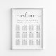Chic downloadable wedding seating chart poster for up to 12 tables featuring "welcome" in an elegant script with swashes, "Find Your Seat" in classic serif typography, your names and wedding date joined together by a heart and the table numbers and guest names in simple modern typography. Select the digital download option to edit with last minute changes and print locally.