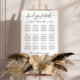 Chic wedding seating chart sign for up to 12 tables featuring "find your seat" in a stylish script with swashes and your names and wedding date joined together by a heart.