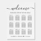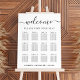Chic wedding seating chart foam board sign for up to 12 tables featuring "welcome" in a stylish script with swashes, "Find Your Seat" in elegant typography and your names and wedding date joined together by a heart.