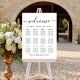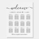 Chic wedding seating chart foam board sign for up to 12 tables featuring "welcome" in an elegant script with swashes, your names and reception date joined together by a heart, and "We're so glad you're here" in classic serif typography.